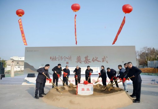 參加活動的領導、嘉賓共同為廣合·桂語金蘭項目培土奠基。邗建集團、綠城集團領導作了關于開展優勢合作、共同建設高品質項目的主題講話。